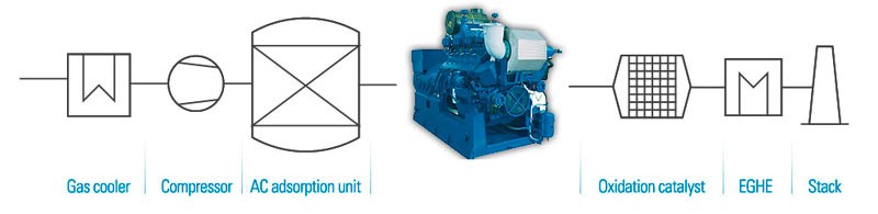 این راهکار قابل اجرا و استفاده است، چراکه هم موتور ژنراتور و هم کاتالیست از یک سازنده یعنی MWM تامین میشوند و بنابراین می توانند دقیقاً با یکدیگر تطابق داشته باشند.